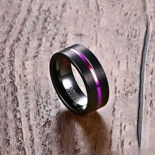 Black Tungsten Carbide Ring with Rainbow Line