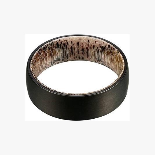 Black Tungsten Carbide Ring with Antler Inner
