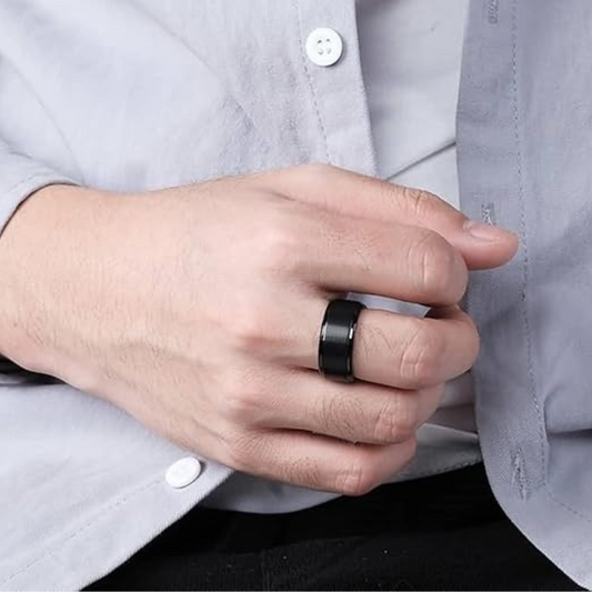 Black Beveled Edge Tungsten Carbide Ring