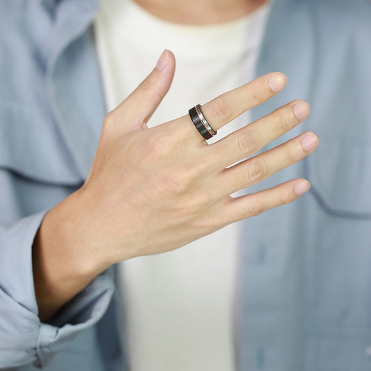 Black with Polished Rose Gold & Silver Groove Tungsten Ring