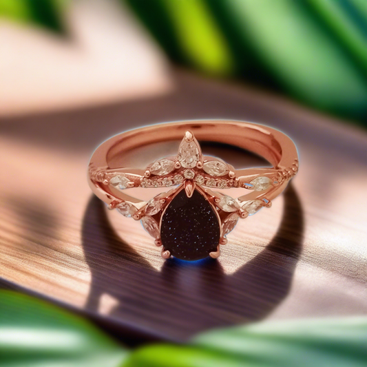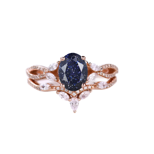 Retro Infinity Blue Sandstone Engagement Ring Set