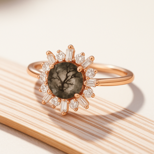 Halo Marquise Moss Agate Ring