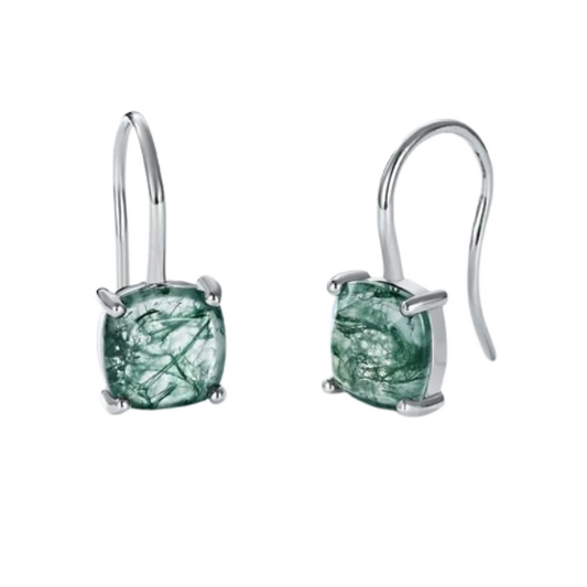 Dhia S925 Green Moss Agate Drop Earrings