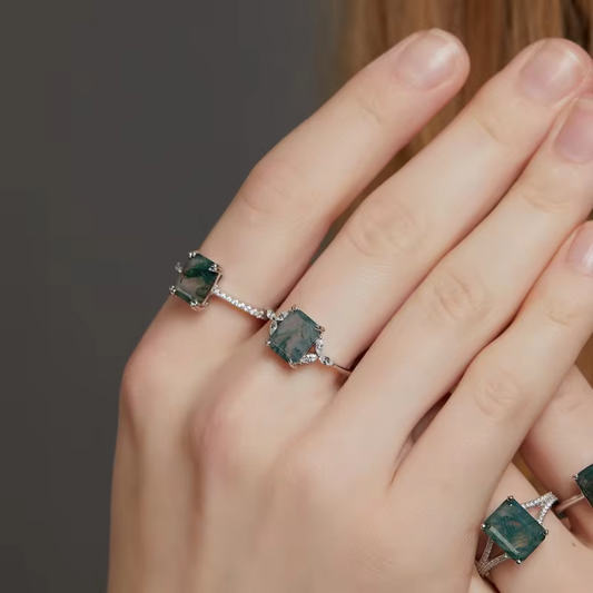 Dhia Emerald Cut Natural Moss Agate Ring