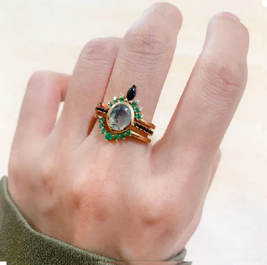 Dhia Moss Agate Oval Ring Twin Set