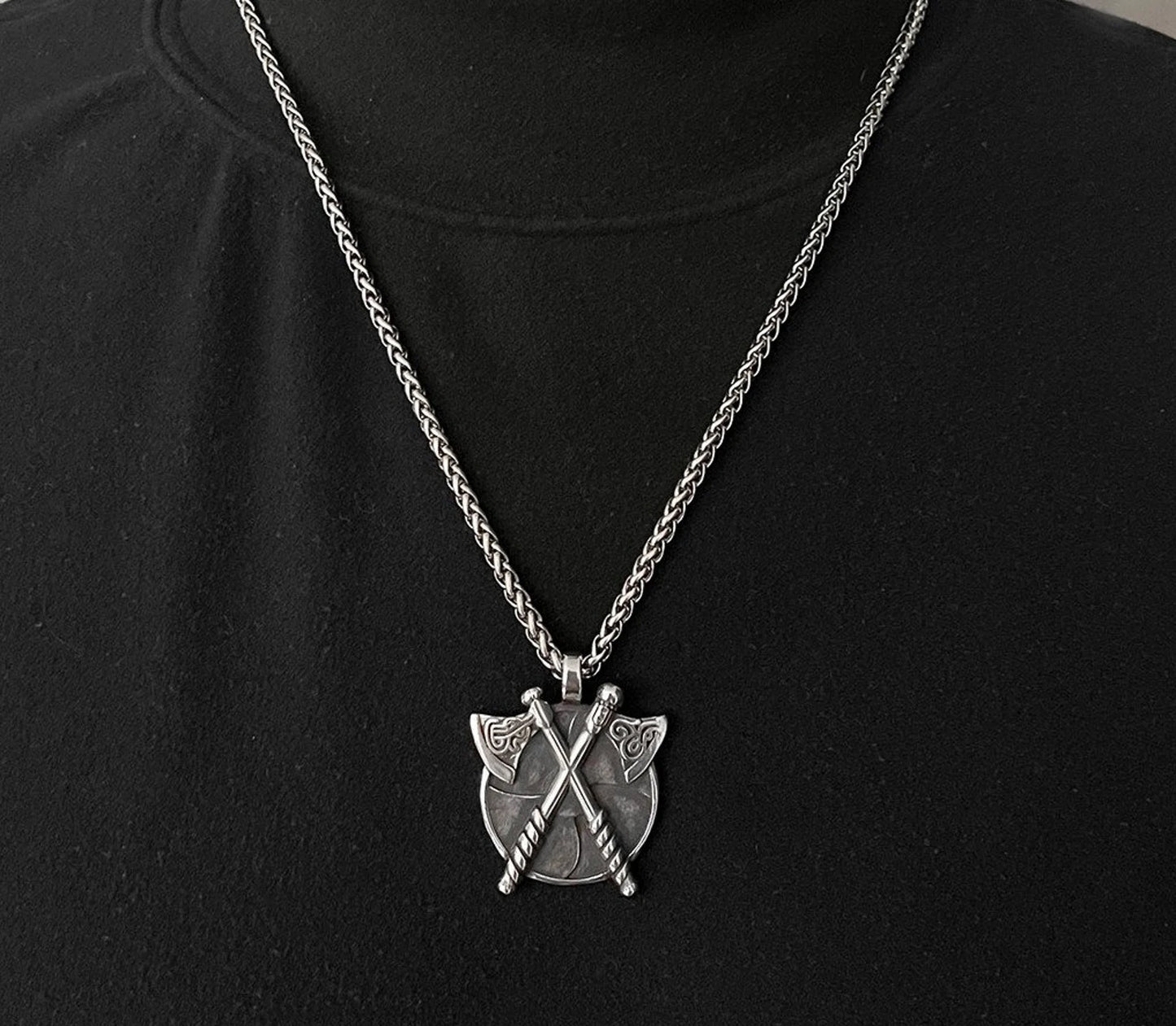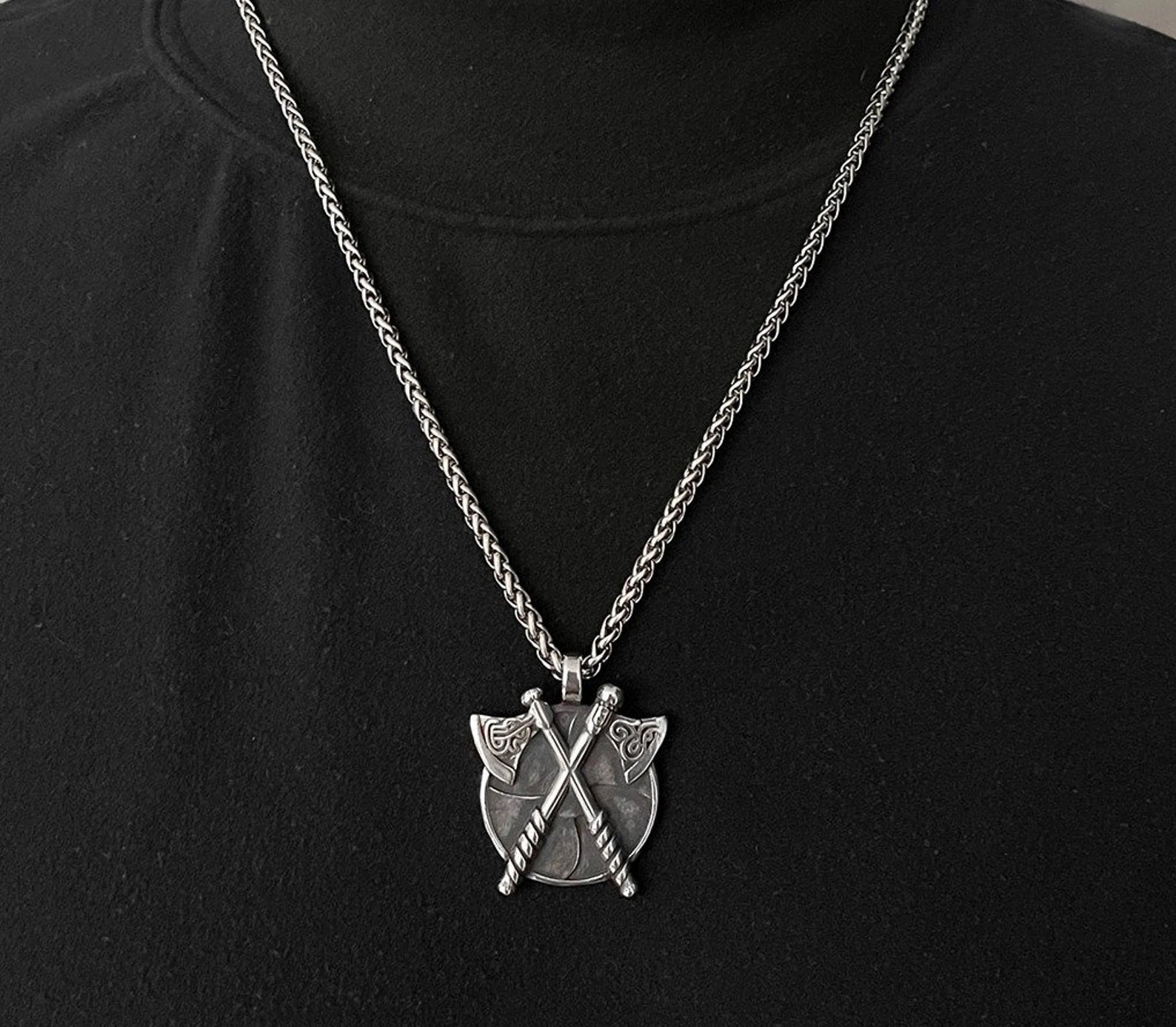 Featuring a bold and symbolic Celtic design, the pendant measures 4.1cm in height and 3.4cm in width, with a weight of 16g for a solid, premium feel. The necklace includes a 60cm stainless steel chain with a 4mm thickness, adding a powerful yet refined touch to any look.