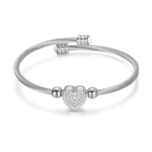 Dhia Cable Wire Heart Charm Bangle Bracelet